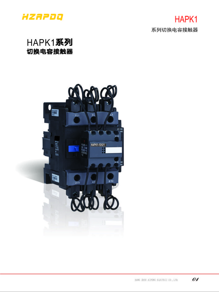 HAPK1系列切換電容接觸器(以下簡稱接觸器)為交流50Hz(或60Hz),額定絕緣電壓為690V,在AC-6b使用類別下,額定工作電壓為400V時(shí)額定工作電流至87A,廣泛用于低壓無功補(bǔ)償設(shè)備中,通斷電容器組。接觸器附有抑制浪涌裝置,能有效地減少合間涌流對電容器組的沖擊和降低過電壓
