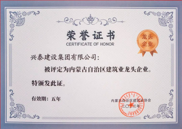 11月4日上午,“內(nèi)蒙古自治區(qū)建筑業(yè)高質(zhì)量發(fā)展大會”在呼和浩特召開。大會公布了內(nèi)蒙古自治區(qū)建筑業(yè)龍頭企業(yè)名單并進行授牌表彰。興泰建設(shè)集團有限公司再次獲此殊榮。