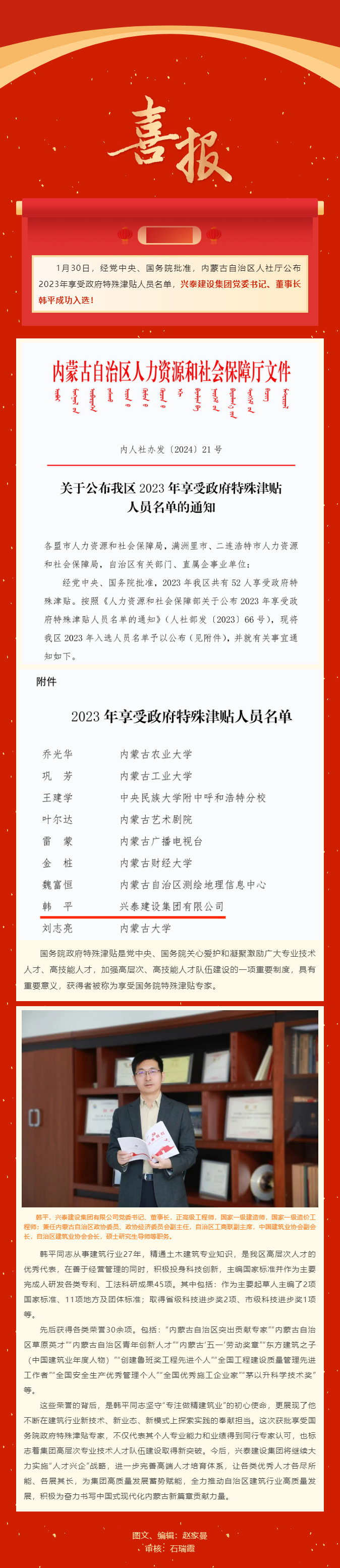 國務(wù)院政府特殊津貼!興泰建設(shè)集團+1!