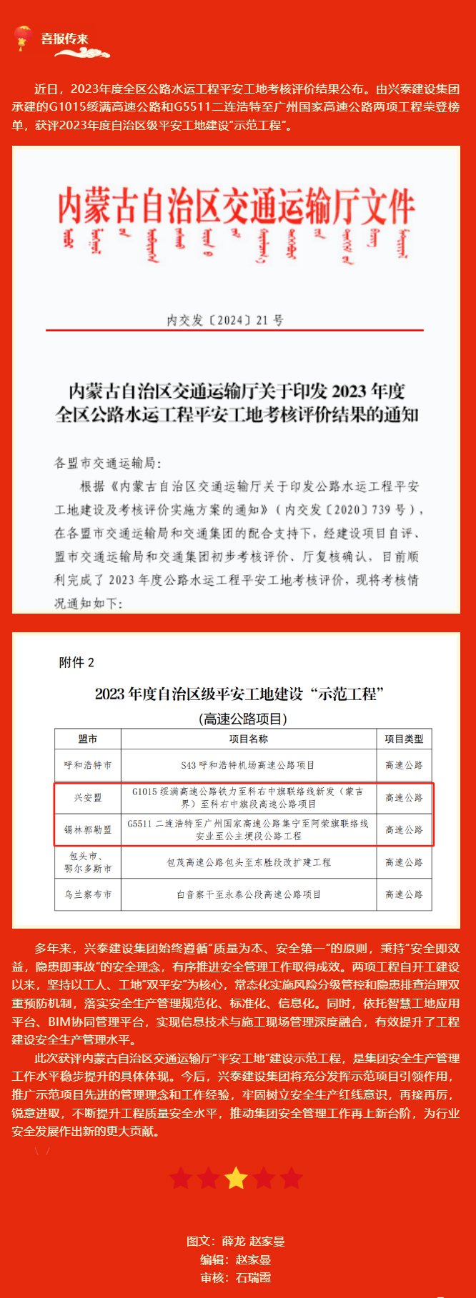 興泰建設(shè)集團(tuán)2項(xiàng)工程獲評(píng)2023年度自治區(qū)級(jí)平安工地建設(shè)“示范工程”