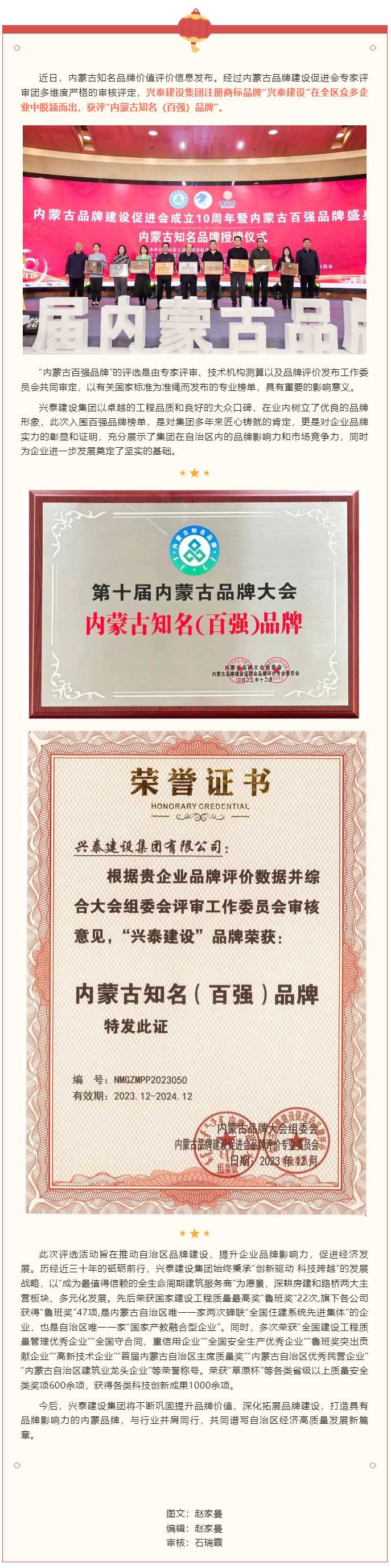 “興泰建設(shè)”喜獲內(nèi)蒙古知名(百強)品牌榮譽