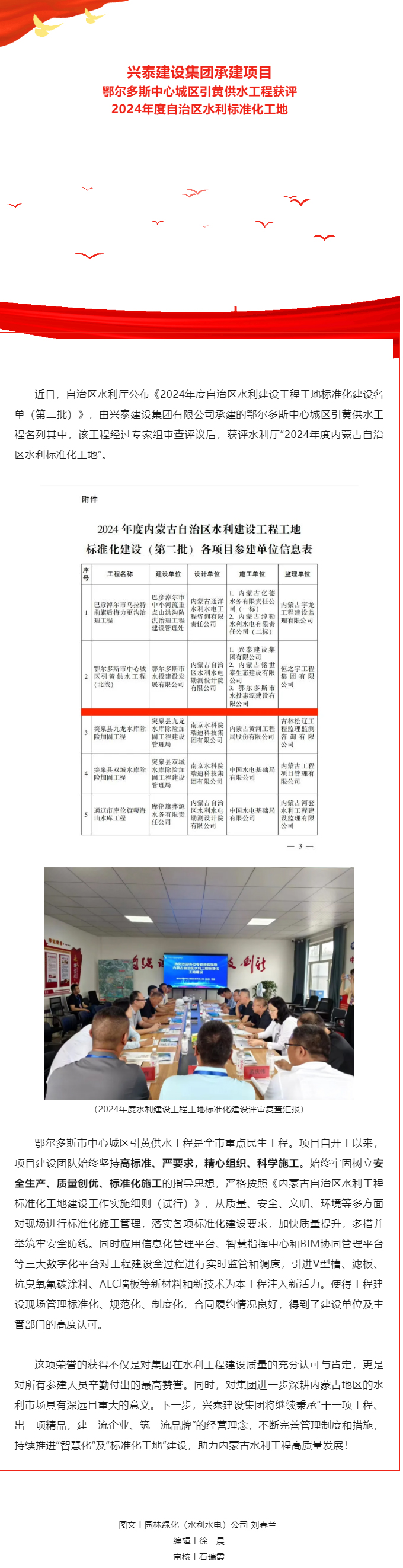 喜報(bào) | 興泰建設(shè)集團(tuán)承建的鄂爾多斯中心城區(qū)引黃供水工程獲評(píng)2024年度自治區(qū)水利標(biāo)準(zhǔn)化工地